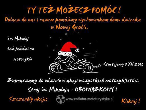 – 11.30 – spotkanie z dziećmi z Domu Dziecka (prezenty oraz przejażdżki na motocyklu)