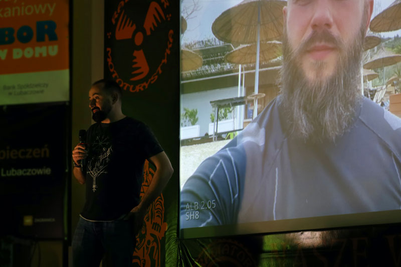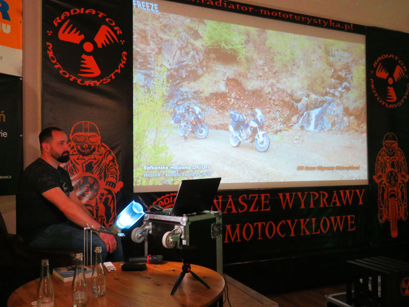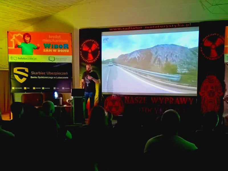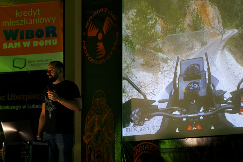 Po krótkiej przerwie przenieśliśmy się na południe. Bałkany i w roli głównej Albania. W roli głównej wystąpił Wojtek Cyrek z kanału Explorer_ADV, który przyjechał do nas z Krakowa na swoim ukochanym „nogołamaczu”. Czy można kochać motocykl, który łamie nogę? Wojtek jest tego najlepszym przykładem. Mimo wcześniejszych doświadczeń na motocyklu i długiej rehabilitacji wsiadł na swój motocykl przemierzając drogi i bezdroża. Dzięki swej niezłomności mógł się z nami podzielić świetnym materiałem, przy którym nasz przestarzały sprzęt zaczął się przycinać na prezentacji. Wielbiciel tras a raczej bezdroży znanych w środowiskach motocyklowych „Trans Euro Trail” pokazał nam różne wymagające odcinki dróg w krajach tranzytowych z Polski do Bałkanów koncentrując się głównie na Albanii. Doświadczony już motocyklista Wojtek, zabrał ze sobą dwie osoby. Każda z nich jechała na swoim motocyklu. Wyjechali we trójkę. Swój wyjazd ukończyli we dwójkę – Wojtek wraz z towarzyszką podróży. Po prostu albańska pętla Theth okazała się zbyt wymagająca dla tzw. świeżaka. Kobieta podołała mimo licznych upadków, również podczas wodnych przepraw. Zrobili całą pętlę Theth solo na motocyklu trasą off przez Prekal. W drodze powrotnej przejechali wyasfaltowaną już drogą SH21 przez Boge. Warto było tego posłuchać i podziwiać niezłomność kobiety na motocyklu, którą liczne upadki jedynie wzmocniły. Z każdego wychodziła cało i z uśmiechem.