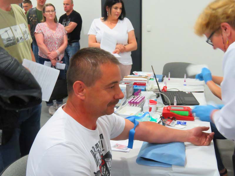 W br. rejestracja chętnych do oddania krwi oraz pobór krwi trwał od godzin porannych i przebiegał bardzo sprawnie. Zarejestrowano 130 osób, z których 110 uzyskało donację – lekarze zakwalifikowali te osoby do oddania krwi. Preselekcja była ostra, ponieważ każda kropla tego cennego daru jest na wagę złota i musi być najlepszej jakości! Każdy, kto chciał oddać krew musiał wypełnić szczegółową ankietę o stanie zdrowia. W tej części Akcję zabezpieczała ekipa Regionalnego Centrum Krwiodawstwa i Krwiolecznictwa w Zamościu i Tomaszowie Lubelskim.