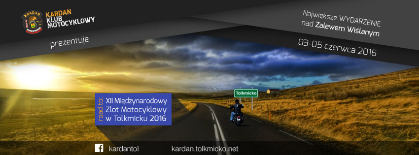 XII Międzynarodowy Zlot Motocyklowy – Tolkmicko 03-05.06.2016 Tolkmicko, ul. Parkowa – warmińsko-mazurskie Kontakt: krzysztof@tolkmicko.net Zapraszamy wszystkich na północ, gdzie odbędzie się już dwunasty zlot motocyklowy Kardan Tolkmicko w dniach 3-5.06.2016, impreza przednia, piękne widoki i niezapomniane wrażenia w pakiecie podstawowym. Więcej na >>> Kardan Tolmicko – więcej wkrótce >>>