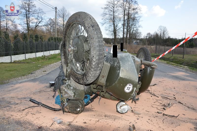 Pechowy zakręt, który podniósł wózek motocykla do góry ...