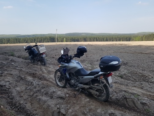 Ale kontrola zegarka wskazuje że jeszcze mogę gdzieś skręcić, więc czemu nie, za Kościołem w lewo tam jest ładny zbiornik wodny, szkoda  że nie wyszło im tam kąpielisko.  Nawet ładnie utrzymane miejsce, potem jeszcze kilka chwil myszkowania pomiędzy drzewami i jak zwykle trafiam na głębszy piasek, nie cierpię piasku …. Dużo go nie było więc zbytnio się nie naszarpałem z motocyklem no i na dzisiaj koniec zabawy, trzeba do pracy …