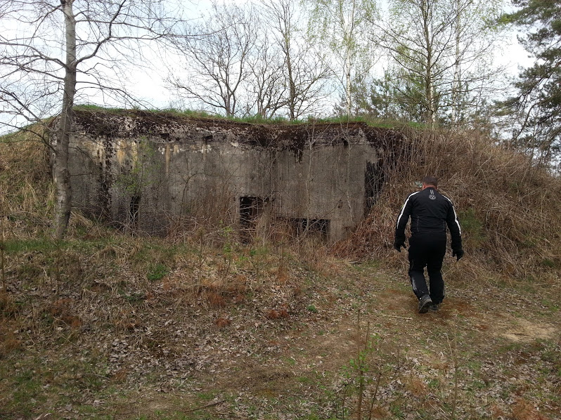 Wyjeżdżamy z centrum Krasnobrodu poza granice miasta. Zjeżdżamy w boczną leśną ścieżkę mijając Park Jurajski Krasnobród, po czym docieramy do szlabanu z parkingiem. Tu zostawiamy motocykle. Do przejścia około 500 metrów.